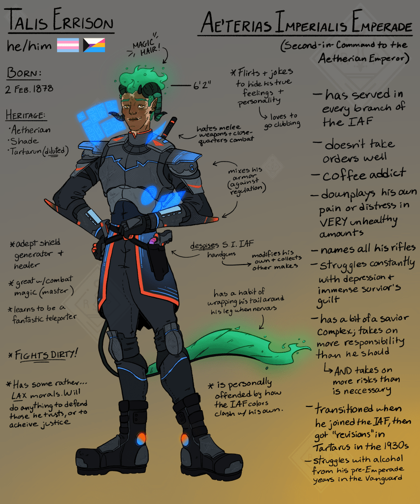 Fractal Alliances is an anthology-style collection of short stories, comics, and narrative illustrations. It follows a diverse cast of main characters – most of whom are deeply involved with the govnernance of Tartarus and Aetheria, two of the largest military superpowers of the Era. But don’t worry – it’s not all politics!